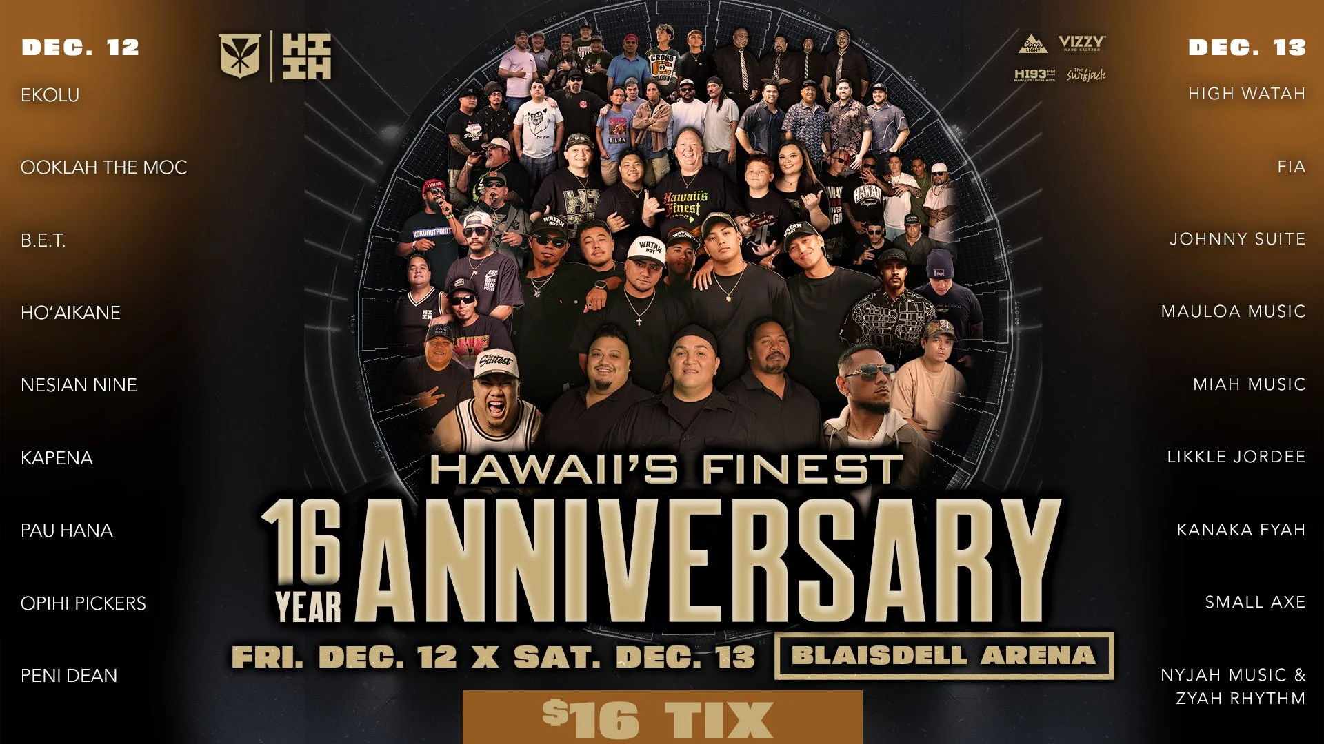 Tickets for Hawaii’s Finest 16-Year Anniversary go on sale Friday, Nov 14 at 10:00 AM. Two nights at Blaisdell Arena, two stages, nonstop island music!